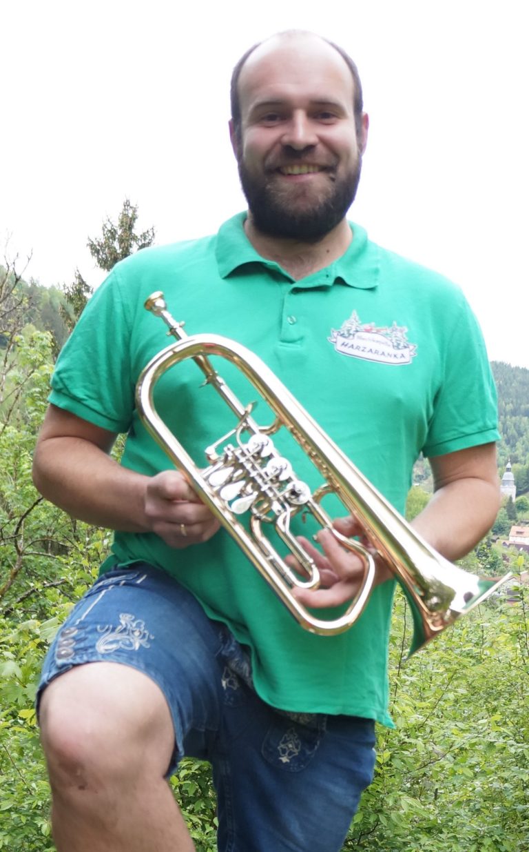 Die sieben Musiker der böhmisch – mährischen Blechkapelle Harzaranka